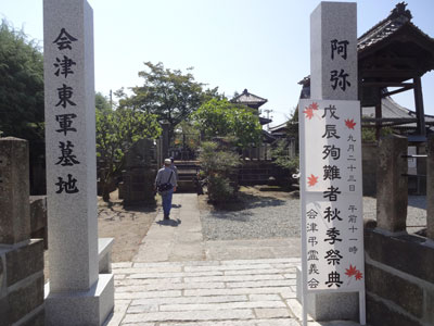 阿弥陀寺には、戊辰戦争で戦死した3千余柱の会津藩士を合葬した墳墓が築かれています。 本堂の拝霊殿には多くの会津殉難者の霊を集めて祀っています。